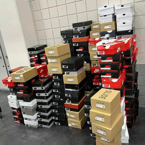 Nike Wholesale Sneaker Pallet 60 pairs (New In Boxes) Men, Women’s, & Kids Mixed styles per assortment. Mixed Sneaker Pallet. Assortment of styles and sizes. Photos provided are samples of previous shipments sent out. Each and every assortment is different based on the ownership of goods. Stock is closeouts, overstocks, shelf pulls from a major discount retailer. Some boxes may be imperfect. The stock sold as is. Final sale